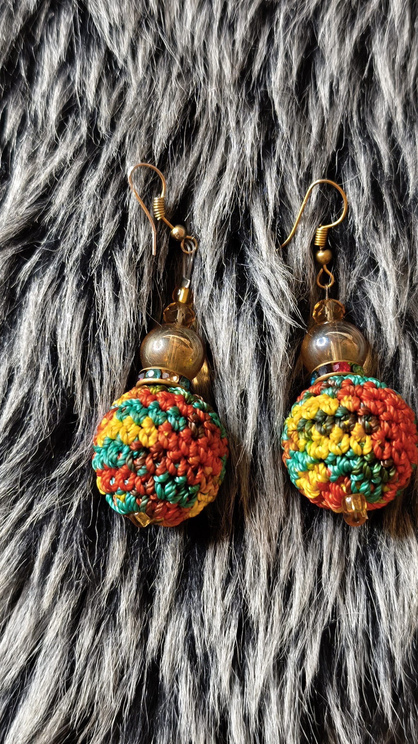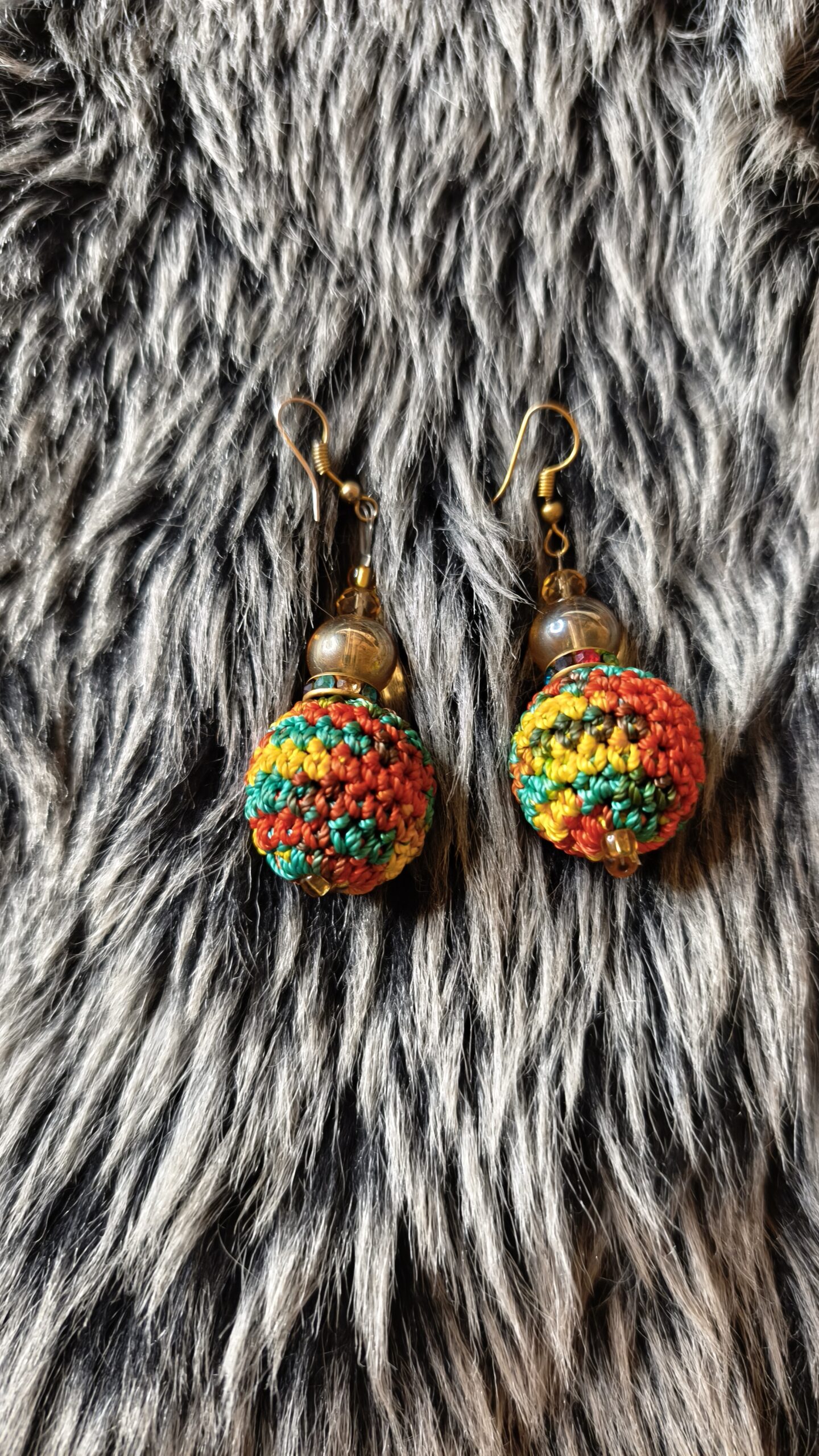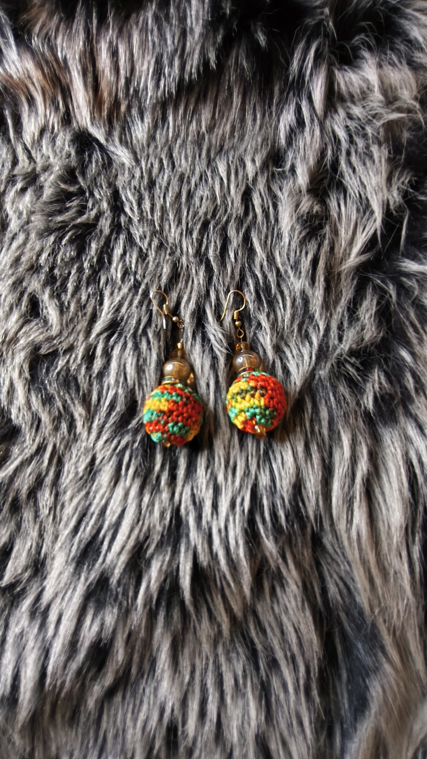 Ces boucles d’oreilles artisanales se composent de perles tissées en macramé aux couleurs chaudes — rouge, jaune, orange et vert — évoquant l’énergie solaire et les inspirations rastafari. Rehaussées de perles dorées et translucides, elles offrent un style chaleureux et authentique. Légères et originales, elles apportent une touche de couleur et de caractère à tous vos looks.
