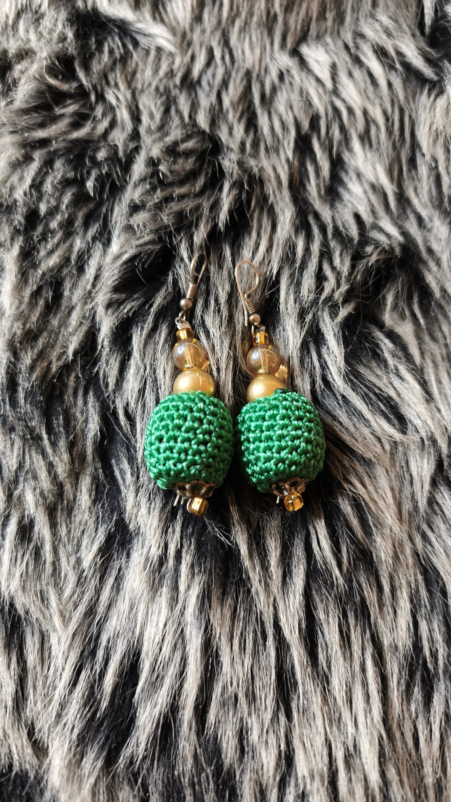 Ces boucles d’oreilles artisanales se composent de perles en macramé d’un vert profond, soigneusement tissées pour créer une texture raffinée et élégante. Elles sont sublimées par des perles dorées et translucides qui ajoutent une touche lumineuse et chaleureuse. Légères et harmonieuses, elles apportent une note naturelle, chic et authentique à toutes vos tenues.